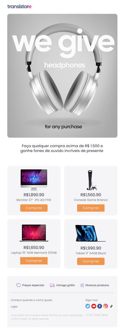 Utilize um template que se adapta perfeitamente a qualquer dispositivo, garantindo que seus e-mails sempre pareçam perfeitos, não importa onde sejam abertos.