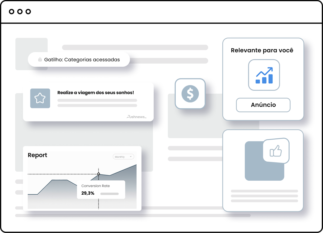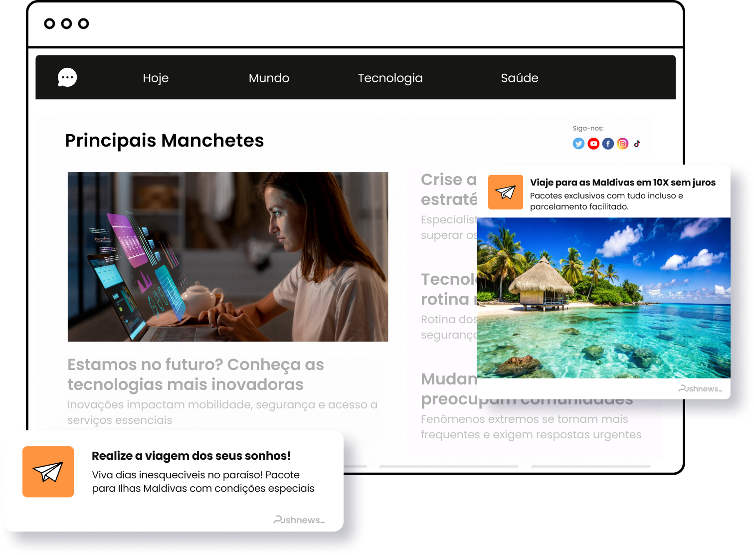 Publishers e e-commerces utilizam slots publicitários em popups para aumentar a receita. Enquanto os publishers maximizam a monetização do tráfego, os e-commerces aproveitam essa solução para impulsionar vendas, promovendo ofertas exclusivas, tudo de forma segmentada e personalizada.