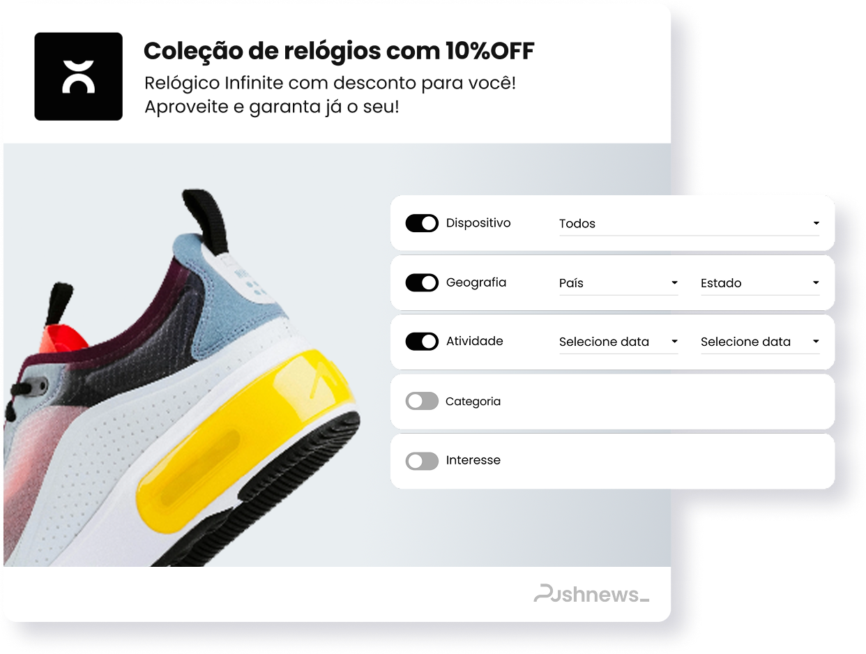 No Pushnews, oferecemos soluções que se integram perfeitamente com sua estratégia para aumentar suas vendas, ajudando sua empresa na recuperação de carrinhos abandonados, retenção de usuários, aumento de engajamento e a maximizar os resultados de seu site.