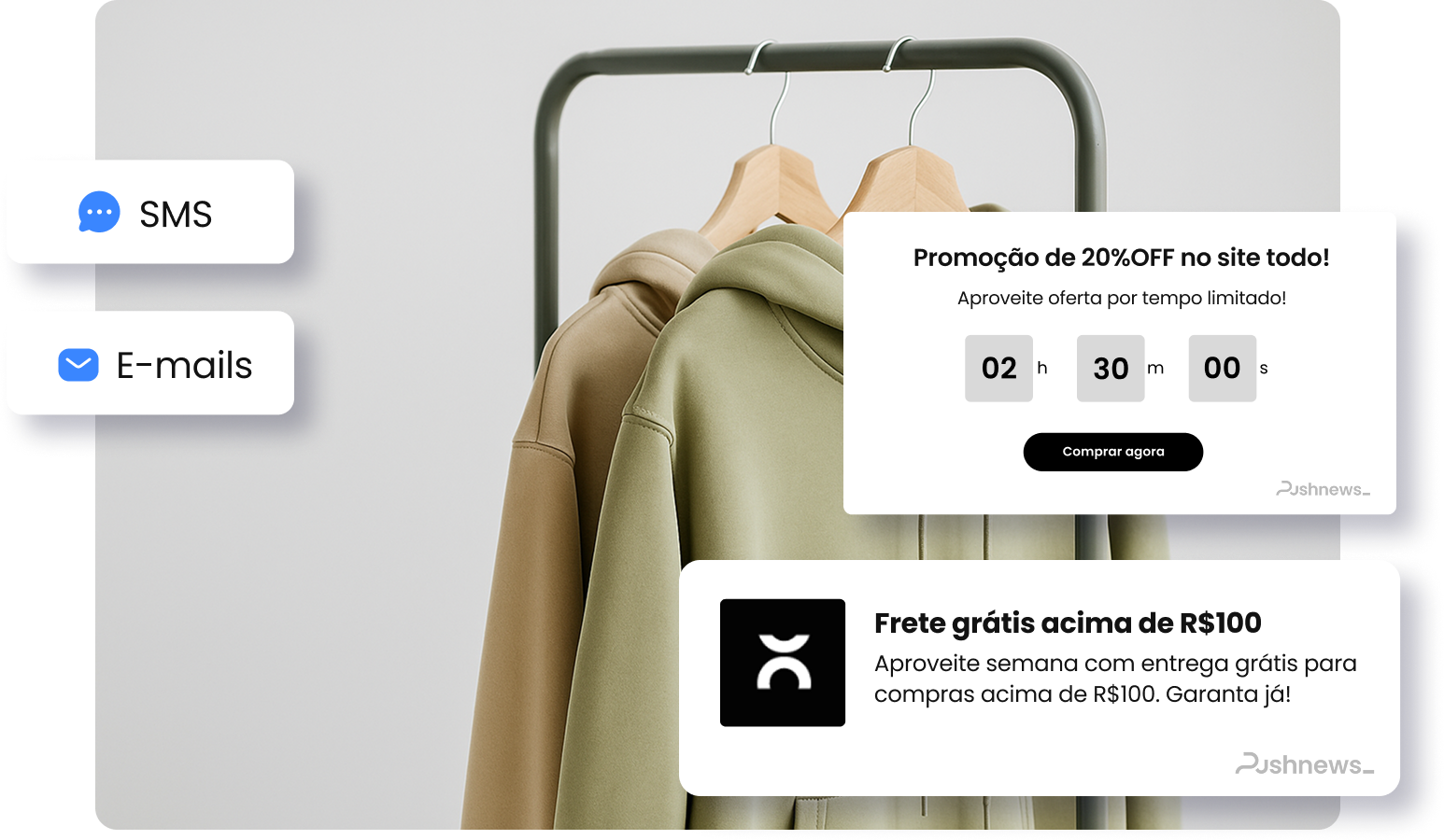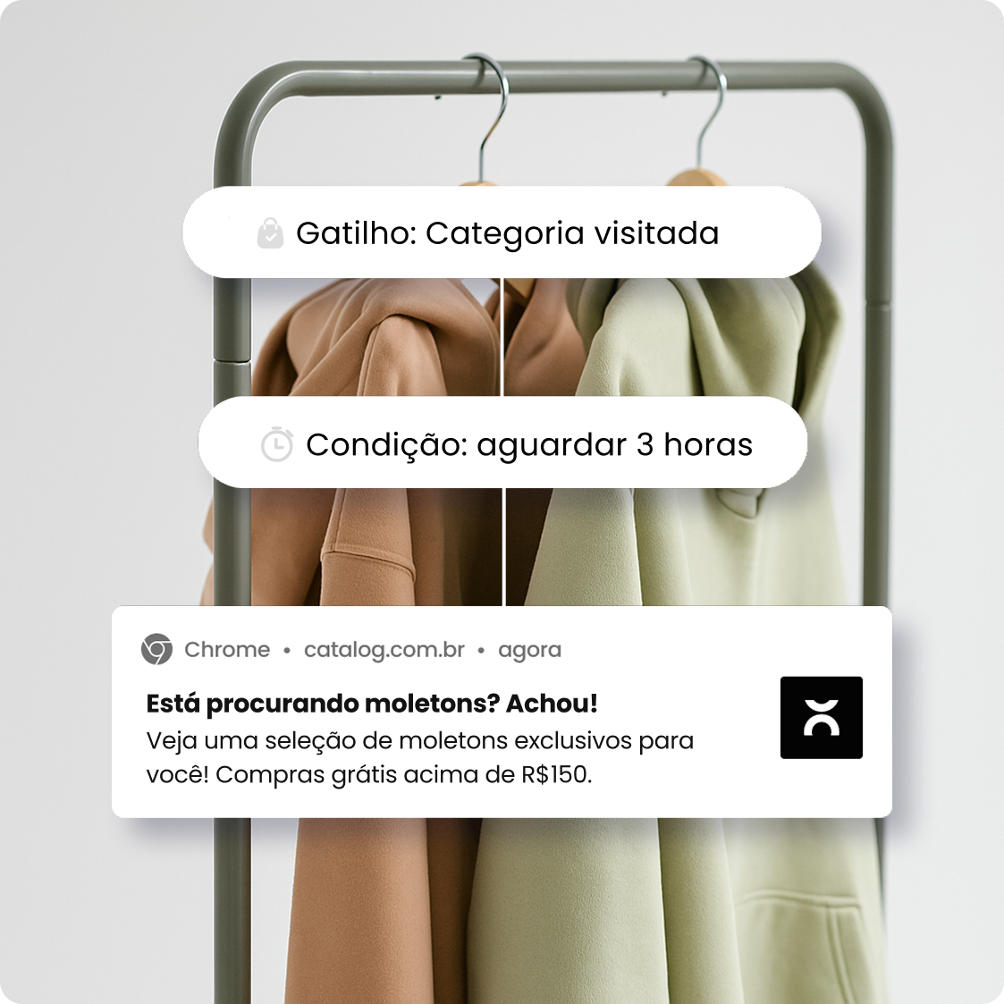 Automações permitem o envio de mensagens estratégicas sem necessidade de ações manuais, mantendo o engajamento contínuo. Soluções como Push de Boas-Vindas e Recuperação de Atenção incentivam retornos ao site e podem aumentar a conversão em até 30%.